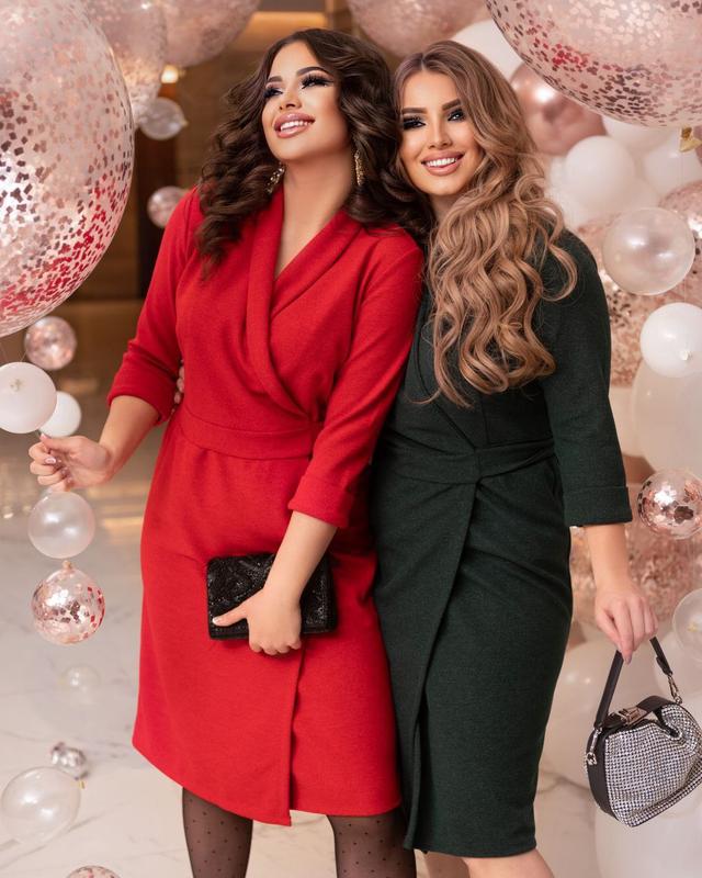 8624 Сукня на запах Представлен в зеленом и красном цвете. Ткань костюмка с легким напылением. Размеры 50-52, 54-56, 58-60 Об.груд 110, 120,130 Дл платья 100