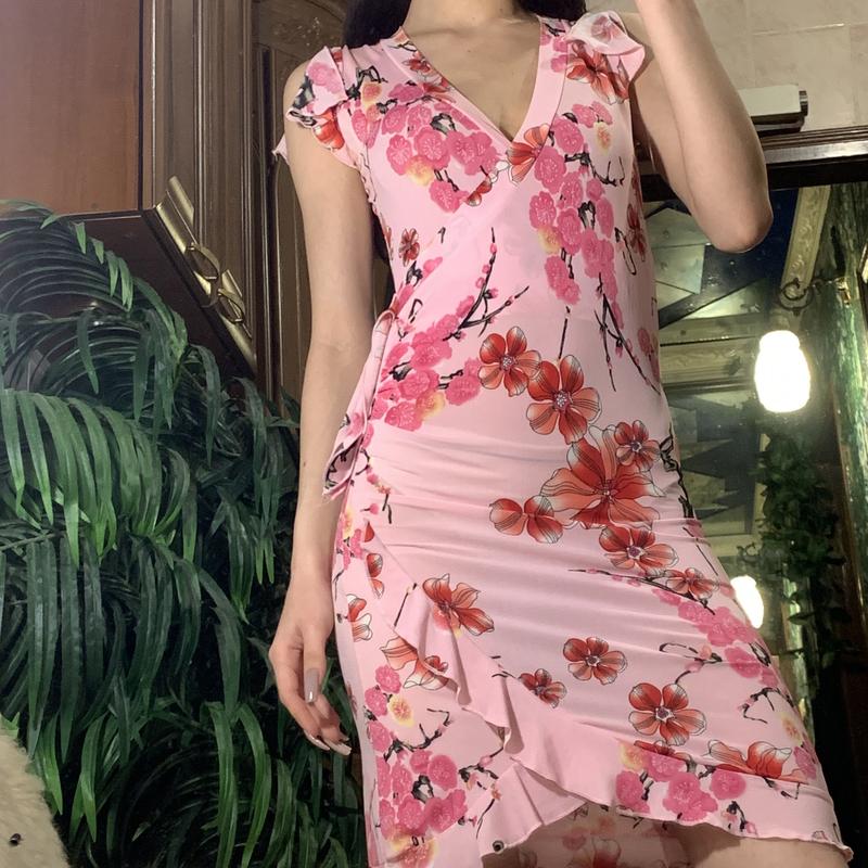 Платье на запах в цветочный принт сакуры