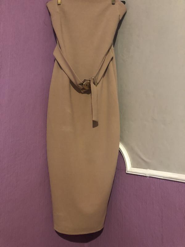 Приталенное платье-миди от Boohoo, декорированное золотым львом на поясе. Длина-92 см.