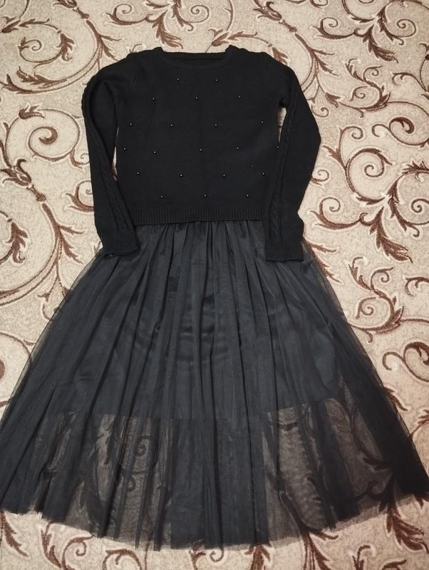 Нарядное платье верх вязка,низ шифон с подкладкой. Очень тянется,верх мягкий и приятный.Состояние новое.