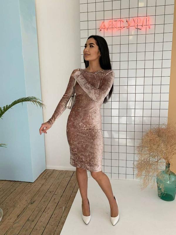 Сукня Модель 1085 modn Размеры: 42-44, 46-48 Тканина велюр гофре Цвета: бордо, электрик зумруд, пудра, черный