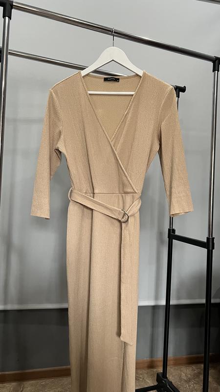 Ткань очень приятная к телу. Хорошо сидит на фигуре, стройнит. Рукав три четверти, запах от пояса. Длина ниже колена (на рост 170 см). Если нужны дополнительные параметры и фото - пишите.