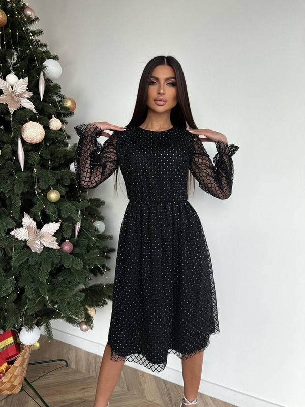 Женское платье Размерный ряд S,M,L,XL Платье из сеточки, на подкладке Талия и манжеты также на резинке Очень красивая и нарядная модель Супер качество Цена 860 грн