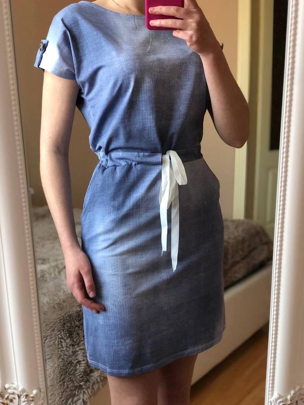 Летнее платье с джинсовым принтом Размеры : s/m (Завязка регулируется)