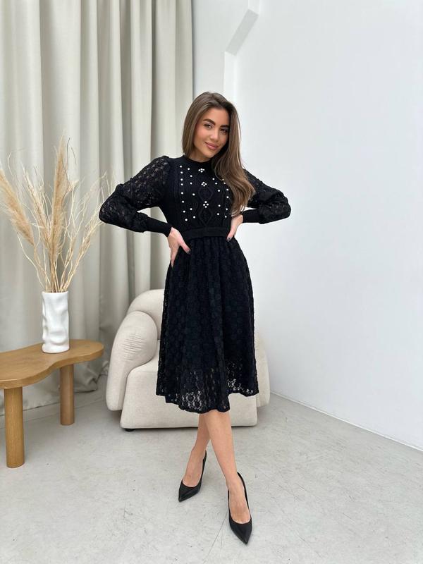 Стильна сукня плаття трикожна мережевна чорна сукня міді 3 кольори