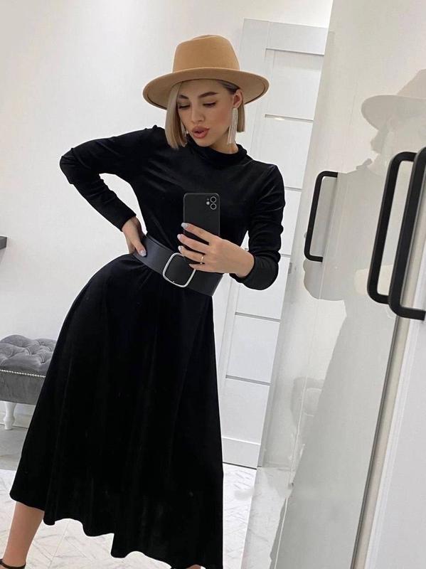 Платье миди ▪️Размеры: S, M, L, XL ▪️Ткань: бархат корейский ▪️Цвет: черный По спинке потайная молния. У комплекті пояс! Супер качество!