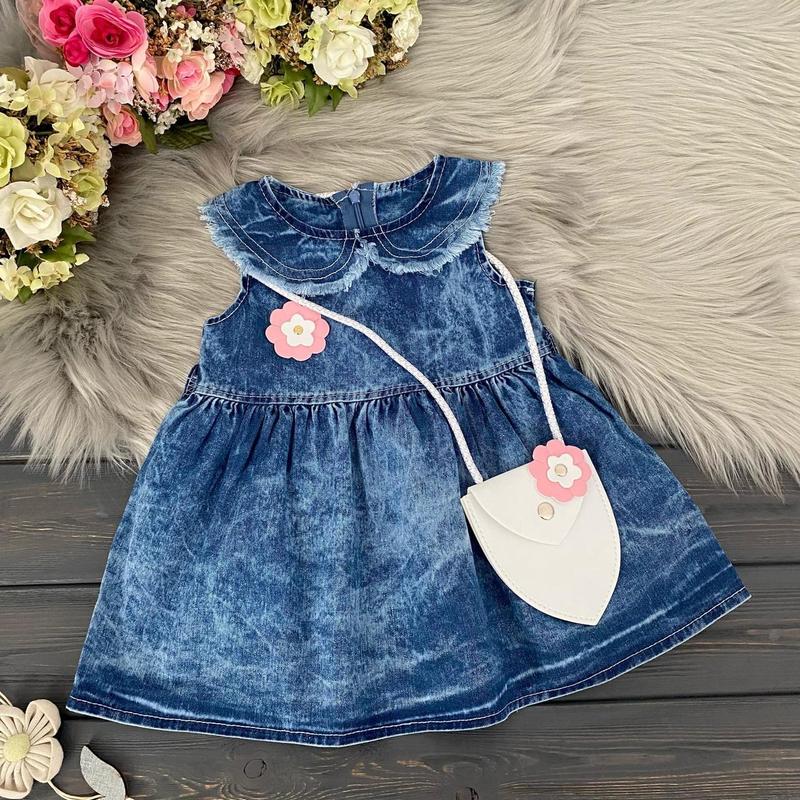 сумочка в комплекті! тканина: тонкий літній джинс Туреччина!!! якість чудова!!! Застібається на потаємну блискавку на спинці Брошка знімна! Заміри: р.1гід довжина/талія 41/27см р.2 роки довжина/талія 43/28 см р.4года довжина/талія 48/30 см