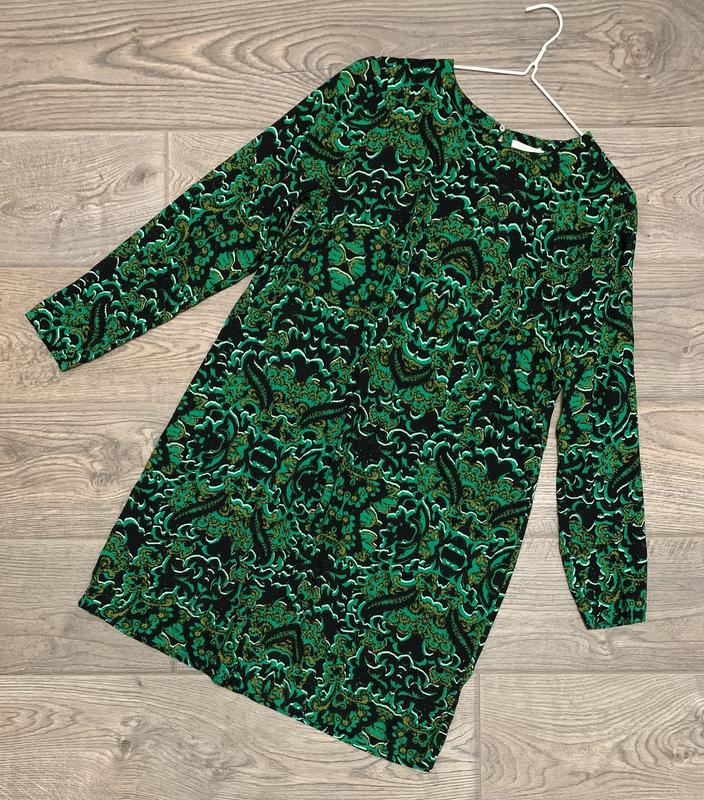 Платье миди H&M р. 14/XL/42. 100% вискоза, свободная модель. Сзади по спинке разрез (внутри пуговица) - фото 9. ПОГ 55 см ПОБ 58 см Рукав 60 см Длина 90 см