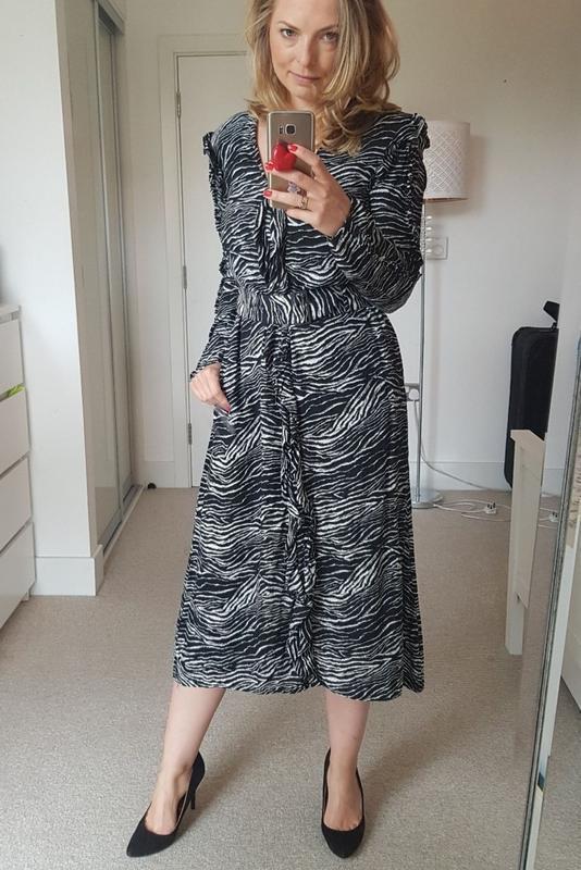 Размеры в наличии 38 и 42. Красивое платье H&M в принт зебра. Спереди застегивается на пуговицы. Ремешок с пряжкой. Оборки спереди и вдоль рукавов. По бокам врезные карманы. 42: ПОГ 56 см ПОТ 59 см ПОБ 67 см Довжина 121 см Рукав 62 см Ширина в плечах 45 см Огромный выбор блуз и платье H&M разных размеров - смотрите, пожалуйста, все мое объявления;) Подписывайтесь - пополнение ассортимента каждый день! Состав: Вискоза
