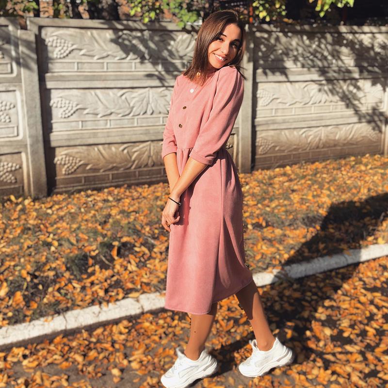 Сукня рожевого кольору з застібками . Підійде як на s-m-l Довжина 107 см Рукав 3/4 Є невеликий дефект з внутрішнього боку слід від праски , але зовні слідів нема . Якщо є питання , пишіть 💜