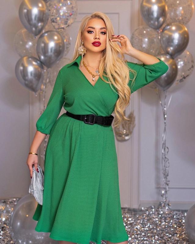 🎄183 МОДЕЛЬ mel ЭЛЕГАНТНАЯ ТРИКОТАЖНАЯ СУКНЯ НА ЗАПАХ! ▪️По горловине воротничок на стойке. ▪️Отрезная талия на легкой резинке. ▪️Юбка полуклиш. ▪️Рукава 3/4 длина, по краю резинка. Пояс в комплекті‼️ ▪️РАЗМЕРЫ: 44-46, 48-50, 52-54 ▪️ТКАНИНА: трикотаж Мустанг в рубчик ▪️КОЛЬОРА: черный, бежевый, фуксия, зеленый, джинс ЗАМІРИ НА СУКНЮ ▪️44-46 р Объем груди 92-96 Обьем талии 80+ резинка Объем бёдер 100 -104 Длина лифа до талии 44 Длина юбки 75 Длина рукава 41 ▪️48-50 г Объем груди 100-104 Объем талии 84+ резинка Объем бёдер 108+112 Длина лифа до талии 45 Длина юбки от талии 76 ▪️52-54 Объем груди 108-112 Обьем талии 88+ резинка Объем бёдер 116-120 Длина лифа до талии 46 Длина юбки от талии 77 Длина рукава 43