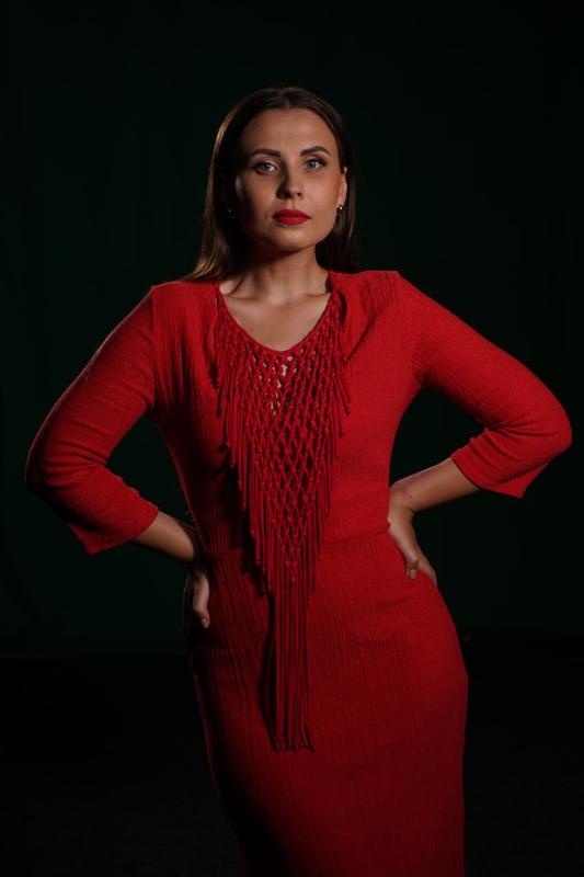 Очень крутое платье с вязаным бахромой. Длина 123 Пог 45 Пот 35 Поб 47 Рукав 35 За счет ткани - красиво тянется.