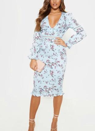 Очень нежное изящное платье Pretty little thing . Цветочный орнамент,кружево,оборка под грудью,низ платья и собранные рукава идеально добавляют романтичность образу👌 Пог 43 см Пот 36см Поб 49 см длина изделия 110 см длина рукава от плеча 63 см