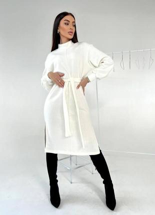 Сукня Модель: 080 osip Ткань: турецкая двусторонняя Ангора люкс ( ткань плотная, мягкая и очень приятная к телу ) Цвета: пудра, молоко, черный, беж и серый Размеры: 42/46 и 48/50 🎀 Теплое и удобное платье с разрезами в длине миди. Супер качество! Это теплое и в то же время стильное платье подойдет для любого события, универсальная вещь, которая должна быть в гардеробе каждой девушки. Тканевый пояс в комплекте ☺️