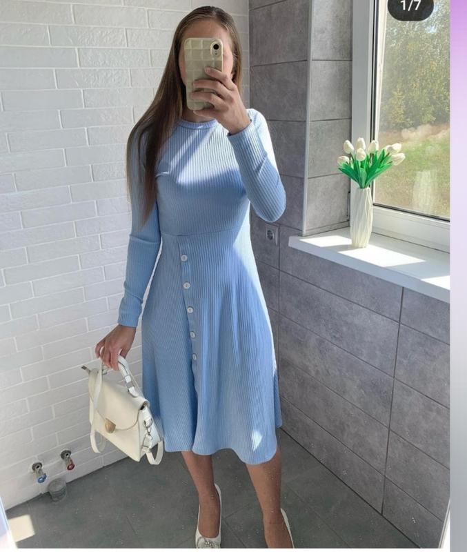 платье в рубчик, в идеальном состоянии. никакого дефекта красивого голубого цвета размер С Пог-38 ПОТ-33 ПОБ-58 длина-104 рукав-60 см Тканина тягнеться