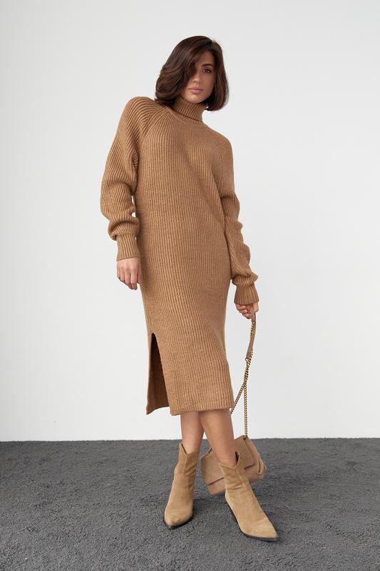 Эта модель полностью выполнена из теплой пряжи. Низ у платья прямой, дополненный боковыми разрезами. Круглая горловина обшита высоким воротником, состоящим в два раза. Длинные рукава реглан по краям имеют манжеты в рубчик. Страна производитель: Турция Материал: Вязка Состав ткани 80% акрил, 10% полиамид, 10% эластан ЗАМІРИ ВИРОБУ Ширина под проймами рукавов (над грудью), 42см Длина рукава от горловины 76см Длина рукава по внутреннему шву 48см Ширина по стегнам 42см Ширина по талии/поясу 42см Длина изделия 99см