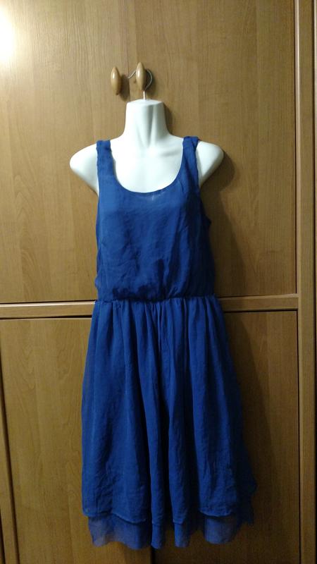 Платье красивого василькового цвета,воздушное,тонкое,подклад котон,и два слоя воздушного верха,Под мышками на пол-м 94см,талия ,в нерастянутом виде на пол-м 35см,тянется на 48см,длина юбки короче 91см,прозрачной 102-103см,есть маленький петли пояс