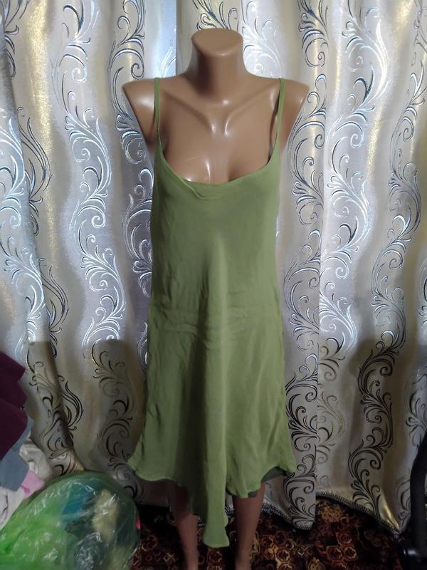 Літня шифонова сукню. Тканина в два шари. Заміри: - напівобхват грудей 52см, - напівобхват талії 53 см, - напівобхват стегон 65 см, - довжина 95 см. В талії і стегнах вільно. Склад: 100% віскоза. Ярлик з фірмою зрізаний. В відмінному стані