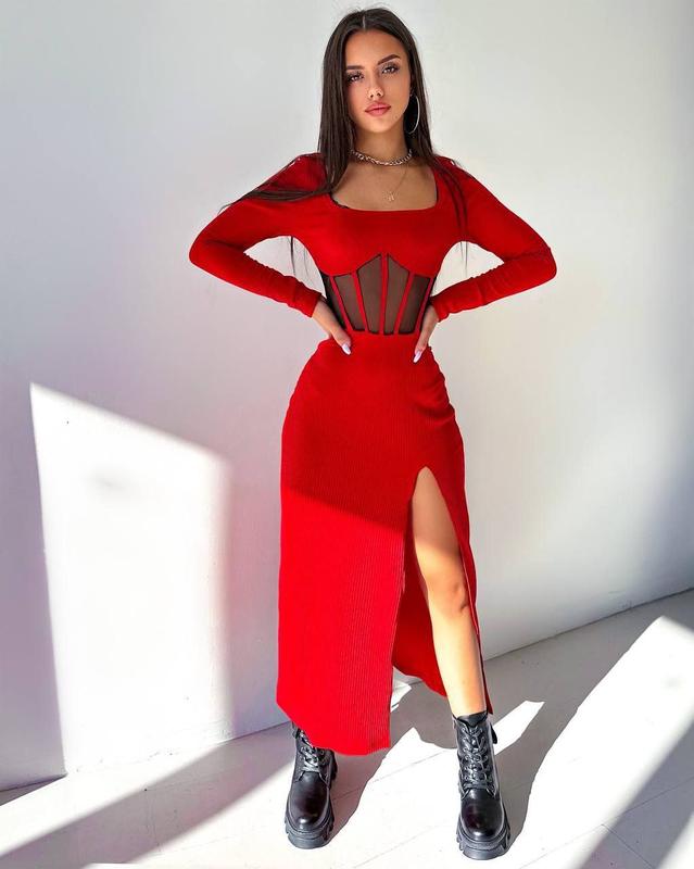 Сукня Тканина: мустанг рубчик Размеры: 42-44, 46-48 Цвета: черный, красный Фото в живу. Отличное качество! Приталенное платье с элементами корсета и разрезом на ножке. Очень красиво подчеркивает талию #524
