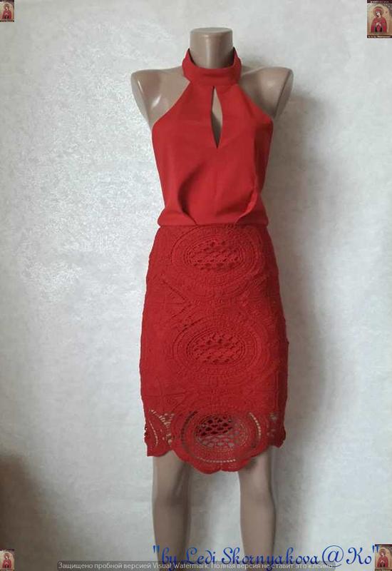 Новое нарядное платье миди с чокером и кружевным низом в сочном красном, размер хс-с