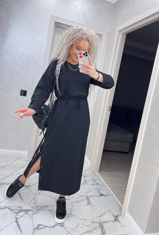 Осеннее платье класса люкс Талия на кулиске, регулируется фасон оверсайз или приталенный. Рукав можно регулировать отворотом на 3/4, что сделает ваш образ более легким и кокетливым. Рабочие кнопки на ножке, вы можете сделать сексуальный разрез или оставить закрытым. Идеальный вариант платья на каждый день в прохладные осенние дни или сексуальное приталенное платье с разрезом на любой праздник – собирай сама и играй со своим образом в нашем шикарном платье. Материал: итальянский трикотаж Джерси. Не линяет, не скатывается, легкий и приятный на ощупь. Размеры: 42-44, 46-48, 50-52 Цвета: джинс, черная, морская волна, беж