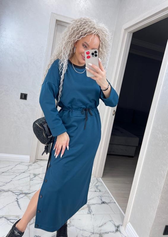 Осеннее платье класса люкс Талия на кулиске, регулируется фасон оверсайз или приталенный. Рукав можно регулировать отворотом на 3/4, что сделает ваш образ более легким и кокетливым. Рабочие кнопки на ножке, вы можете сделать сексуальный разрез или оставить закрытым. Идеальный вариант платья на каждый день в прохладные осенние дни или сексуальное приталенное платье с разрезом на любой праздник – собирай сама и играй со своим образом в нашем шикарном платье. Материал: итальянский трикотаж Джерси. Не линяет, не скатывается, легкий и приятный на ощупь. Размеры: 42-44, 46-48, 50-52 Цвета: джинс, черная, морская волна, беж
