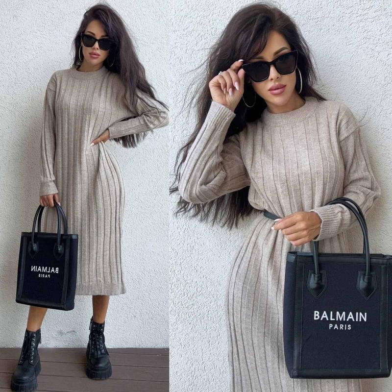 Очень теплое платье Фиби 🖤 В продаже без ремешка! Размер единый 42-50 Мелкая машинная вязка 33% акрил, 37% поліестер, 30% памук Цвета – капучино, зеленый, черный, молоко Производство Турция 🇹🇷 Все фото наживо❣️ *Отправка отдельной посылкой НП или УП (car) 🔹 Длина по спинке 115-117 см 🔹 Длина рукава от плечевого шва 55 см 🔹 Длина рукава от горловины 70 см 🔹 Объем груди, талии и бедер до 120 см 🔹 Платье прямого кроя❗️