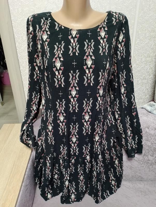 Платье черное в принт с оборкой вискоза
