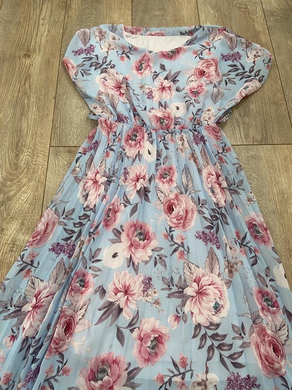 Легкое цветочное платье, мягкое резинку на поясе и белый подклад