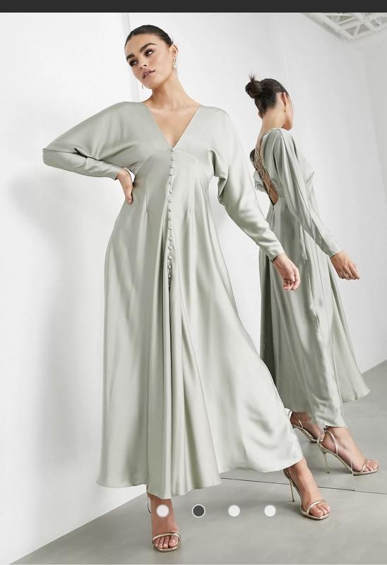 Плаття ASOS з сатину, довжина міді. Дуже якісне з підкладкою. Розмір M (38) Є 2 затяжки, але через довжину в носці не видно. Вдягала 1 раз