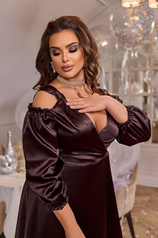 Сукня Материал - шелк-атлас, длина 100 см, одевается на запах, чем идеально садится по фигуре, перепонками по лифу можно регулировать декольте: поставить перепонки на плечи- более закрытое декольте. Опустить вниз - более глубокое. 🔹48-52 - на ОГ 96-105, ОБ до 125 🔹54-58- на ОГ 107-118, ОБ до 135 🔹60-64 - на ОГ 120- 130, ОБ до 150 🔹66-70- на ОГ 132-142, ОБ до 170 Размеры: 48-52, 54-58, 60-64, 66-70