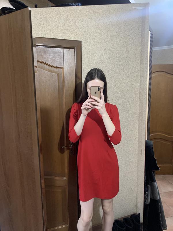 Красное платье миди с недлинным рукавом.Одето на размер s, рост 176.Взади замок по своей длине.Ткань хорошо тянется и приятная к телу
