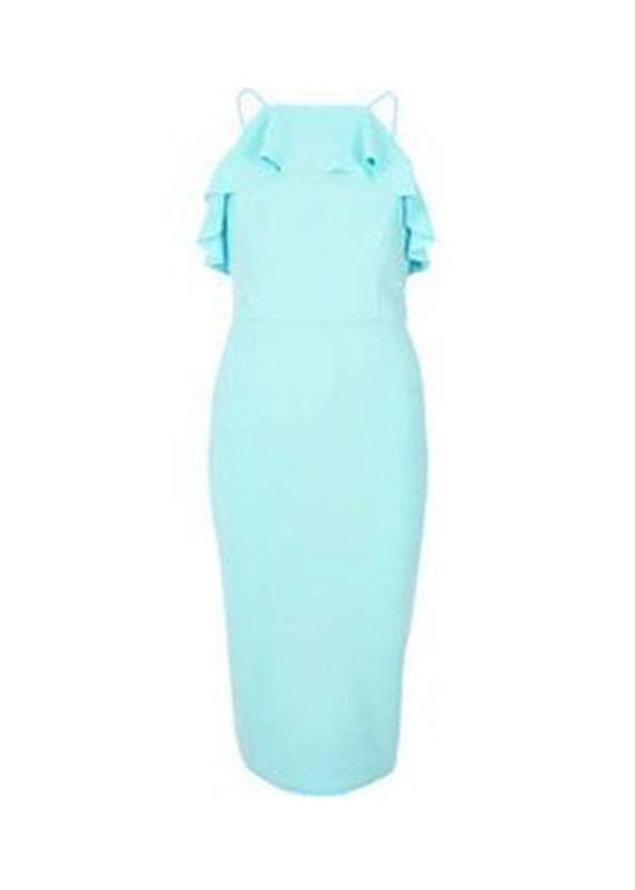 Стильное платье-карандаш на тонких бретелях с оборкой по верху от бренда River Island. Модель с застежкой на потайную молнию сзади. В верхней части подкладка. Замеры в спокойном виде, ткань еще тянется: ПОГ 40 см (тянется до 46) ПОТ 37 см ПОБ 47 см Длина от уровня плеча до низа примерно 102 см Состав: 95% полиэстер, 5% эластан. Состояние новой вещи.