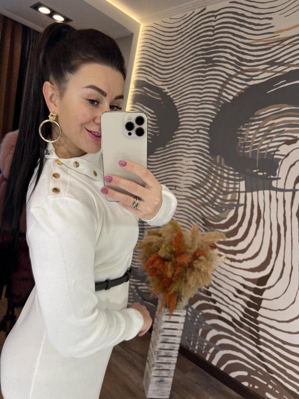 стильное и элегантное платье свободного кроя с высоким горлом на резинке внизу и рукавах, в комплекте с практичным поясом, будет отлично смотреться на вас в любой жизненной ситуации, она выполнена из приятного на ощупь трикотажа гладкой машинной вязки, декорированного яркими кнопками золотистого цвета на воротнике длина 120-122 см, пг 50-52 см, длина рукава от шеи 70-72 см размер 46-50 код 0463
