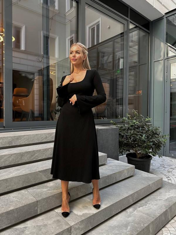 ▪️Размер: 42, 44, 46, 48 ▪️Материал: трикотаж рубчик ▪️Цвет: масло и черный ▪️Удивительное платье длины миди. Имеет завязки на спине, за счет которых подчеркивается талия.