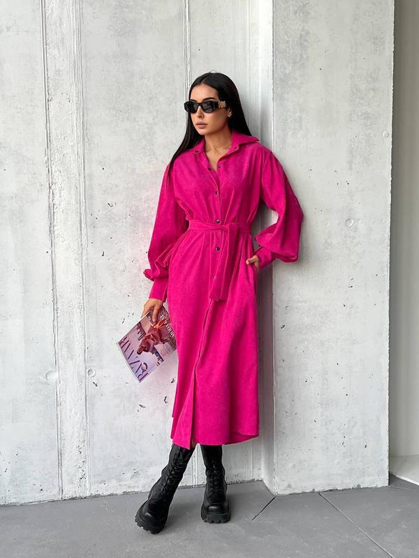 🧚🏻♀️Стильное платье из вельвета 🧚🏻♀️ Мод 086 📍Тканина - вельвет; 📍Размеры :42-44,46-48,50-52 Стильное молодежное платье,в котором ты будешь выглядеть стильно и практически.Длина миди.Одевается под пояс.Застегивается на кнопки.Стильный рукав - «Фонарик». Цвета:малина,черный,хаки,беж