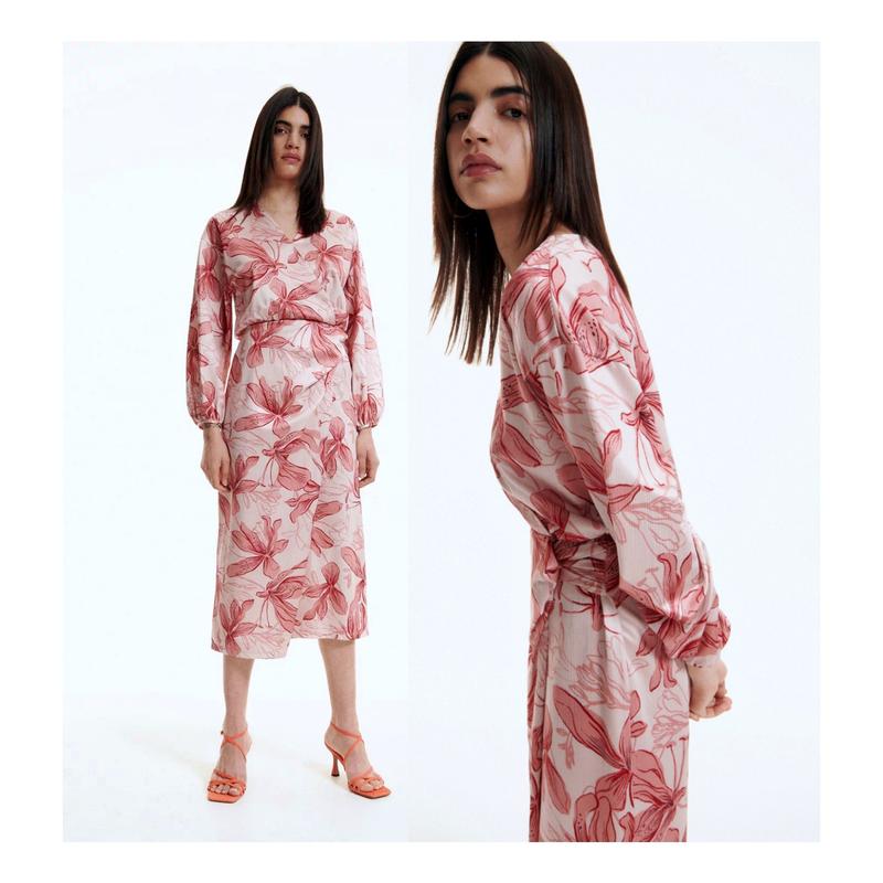 Меди платье ниже колена в цветочный принт reserved пудровое платье на запах с длинным рука...