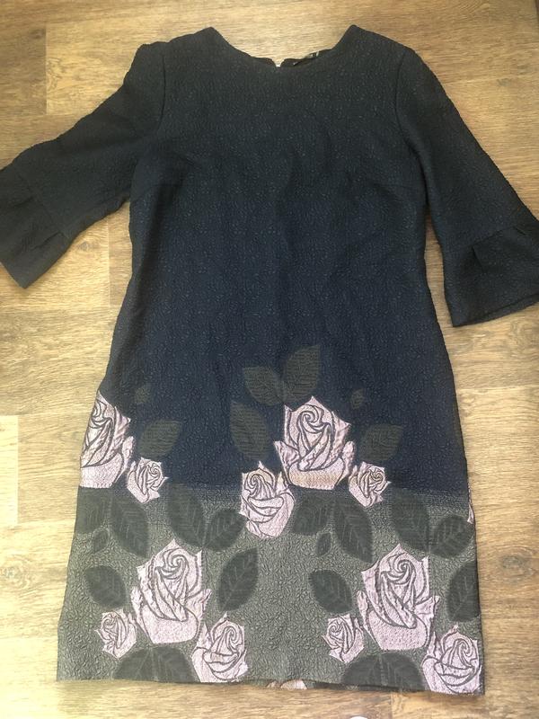 Платье темно синего цвета в цветах, ткань, как жатка.Длина-104, пог-51, пот-49, поб-56.В идеальном состоянии.