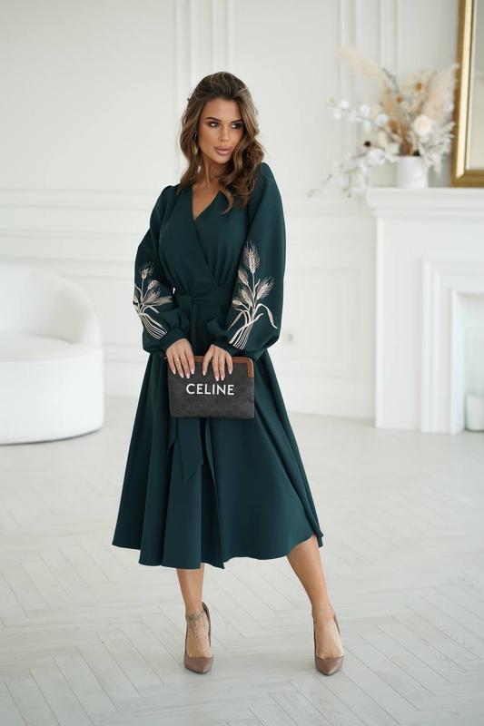 ❤️🔥Невероятное платье на запах с вышитыми коласками 🔸Мод. 7507 ☑️Размер: S (42), М (44), L (46) ☑️Тканина: костюмка ☑️Цвет: зеленый, беж ☑️Цена: 1100 грн