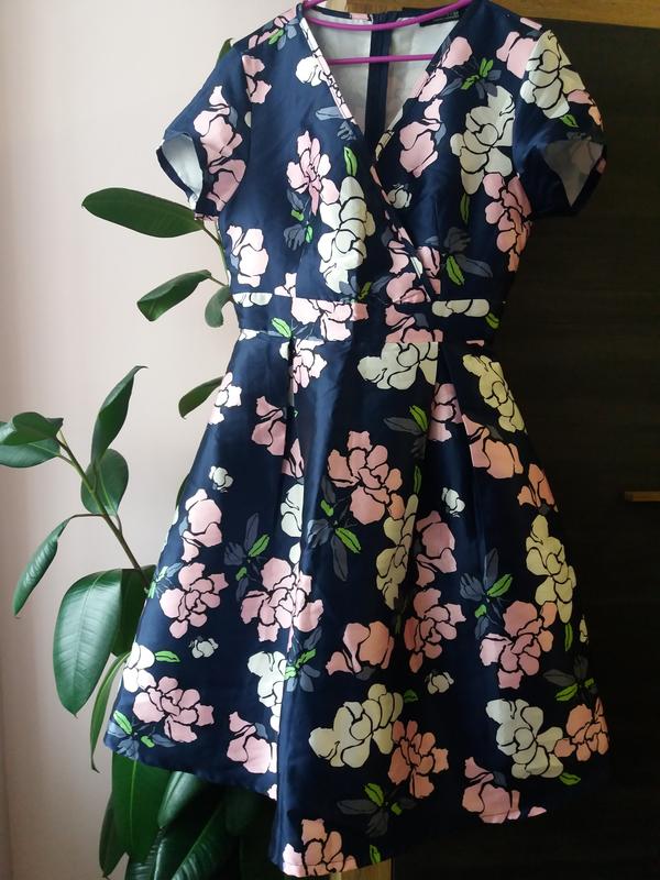 Платье женское, пышное, темно-синего цвета с принтом