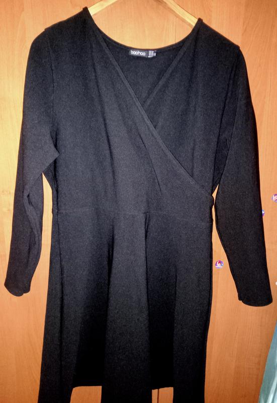 Якісна та стильна маленька чорна сукенка. Спідниця добре тримає форму кокетливого дзвіночка. Матеріал добре тягнеться. ПоГ - 54 ПоТ - 46 -50 ПОБ - -60 Загальна довжина - 90 Довжина від талії - 41 Рукав - довжина - загальна 68 см від плеча 58 см ПО Біцепс - 17 см низ - 11 см