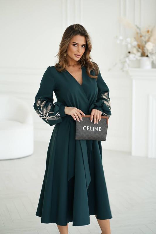 НОВИНКА 💕 ❤️🔥 Платье на запах с вышивкой Модель 7507 Размер S (42),М (44),L (46) Цена 1390 грн Тканина: костюмка Длина: 117 см Длина рукава: 67 см Цвета: зеленый, беж