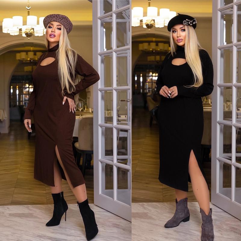 Розміри 42-46,48-52,54-58 Тканина широкий рубчік люкс якість не кашлатиться дуже приємний мягенький до тіла Кольори чорний, шоколад Сукня йде оверсайс, на грудях виріз який підкреслює чарівність ваших форм, розріз зліва довжина 35 см,плече приспущене Заміри сукні 42-46 Ог і об 100 тягнеться до 110 бедра 108 до 114см, довжина рукава 69см від горловини, довжина сукні 115см 48-52 Ог і от 114 см тягнеться до 124 см, бедра 120 до 130см, довжина рукава 73 см від горловини, довжина сукні 116см 54-58 Ог і от 124см тягнеться до 134 см, об 126 см до 136 см, довжина рукава 74 см, довжина сукні 117 см ои