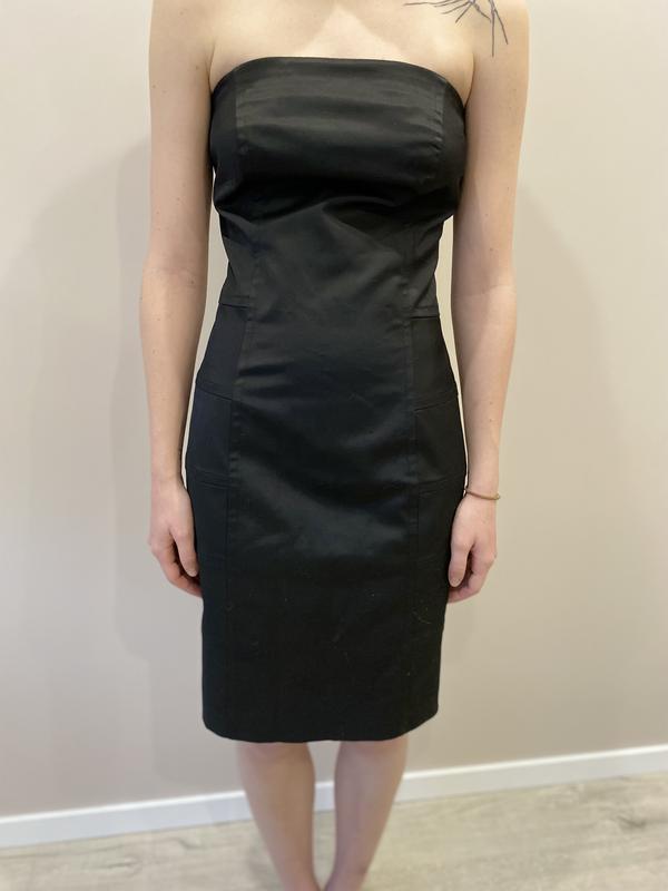 Платье в очень красивом состоянии. Наделась 2 раза. Ткань плотная, платье красиво сидит по фигуре. Длина по спине 70 см Длина спереди 78 см ПоТ 34 см ПоБ 41 см Ширина по спине 37 см На ОГ 80-86