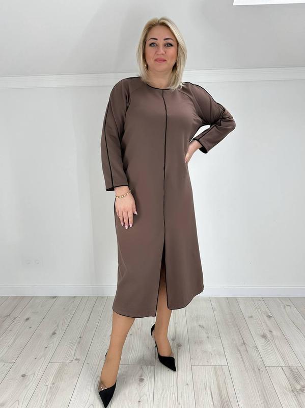 Платье Арт 2345 Ткань трикотаж Алекс премиум плотный, отделка кант Цвет черный, мокко Размер 48-50, 52-54, 56-58 Шикарное платье макси, с длинным рукавом, с отделкой кантом и разрезом спереди. Пояс из экокожи, не идет в комплекте. Можна придбати окремо. Цена пояса 150 грн