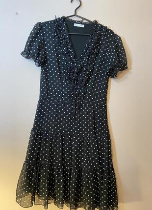 Сукня чорна в горошок розмір M б/у, коктейльне, до колін В гарному стані, підійде для вечірок або в офіс Підійде для дівчат з фігурою груша на бедра об'ємом 100-110 (за необхідності) Сукня шифонова, має плотну підкладку