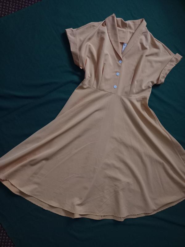 Элегантное женственное платье абрикосового цвета. Отличное качество. Юбка - солнце.Стан новой ПЛЕЧІ 72 (крой) НОГ 60 НОТ 42 ДОВЖИНА 106 размер. XL ткань 97 полиэстер