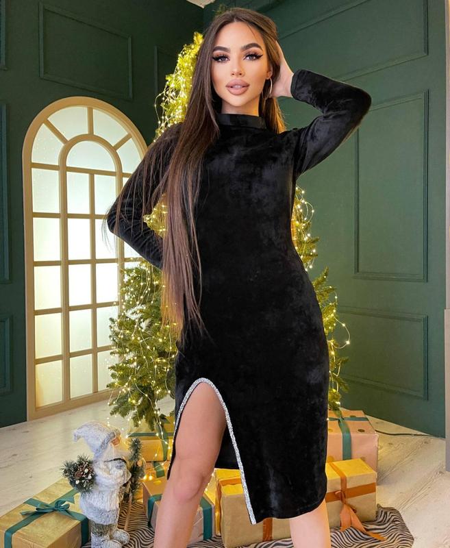 Бархатное платье под горло и с разрезом по ноге Ткань: бархат+декор из камней Размеры: 42-44, 46-48 ЗАМЕРЫ 💜42-44: 0г 82-102 ОТ 64-80 см ОС 86-109 см __________ 💜46-48: 0Г 90-110 см ОТ 78-94 см ОС 94-117 см Длина 106см Рукав 56см Разрез 37см