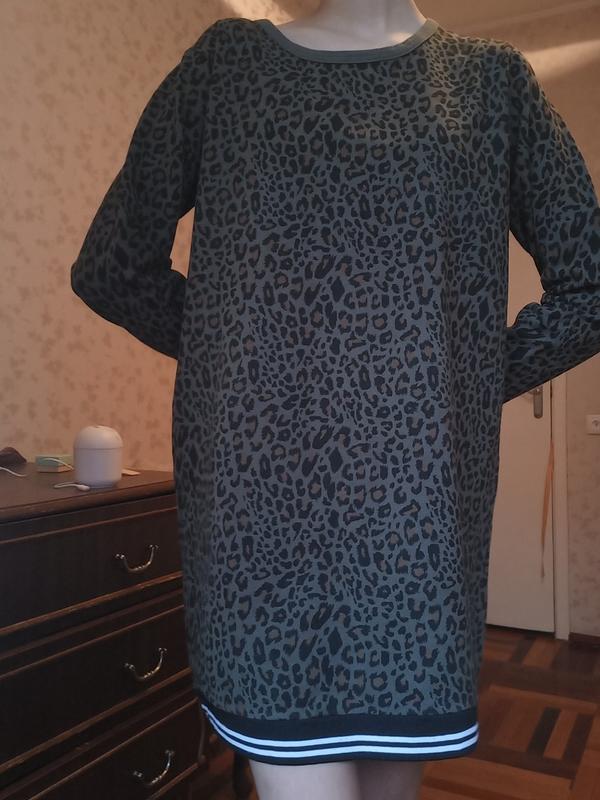 Сукня леопардова ☆средней длины ☆с животным принтом ☆с длинными рукавами ☆удобная и комфортная ☆зелено-черно-белого цвета ☆прямая ☆с резинками на рукавах и внизу ☆тянется ☆размера М ☆в идельном состоянии ☆бавовна + еластан За дополнительными фото или замерами пишите в личные