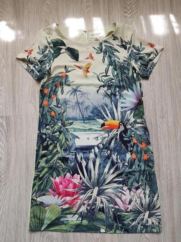 Спереди принт, сзади одноцвет, немного прозрачное. Длина - 85 см, ПОГ - 46 см, ПОБ - 52 см.